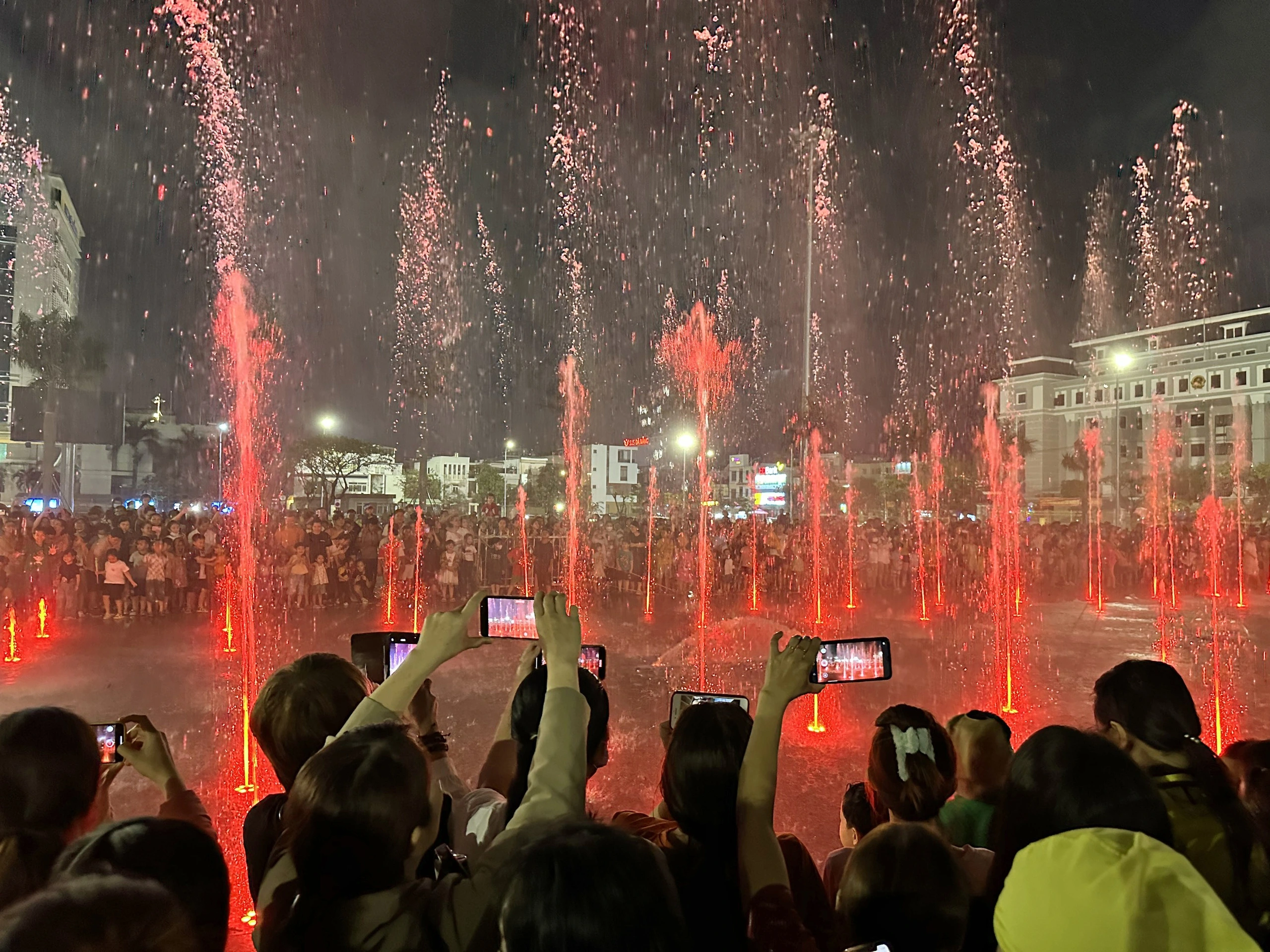 Kết quả là quảng trường không còn chỉ là “nền” của sự kiện, mà tự nó trở thành trải nghiệm. Trẻ em chạy vào là có trò chơi. Người lớn đi dạo vẫn thấy một không gian có nhịp điệu. Du khách đứng xa nhìn cũng thấy hiệu ứng thị giác đủ hấp dẫn để… rút điện thoại lên quay.
