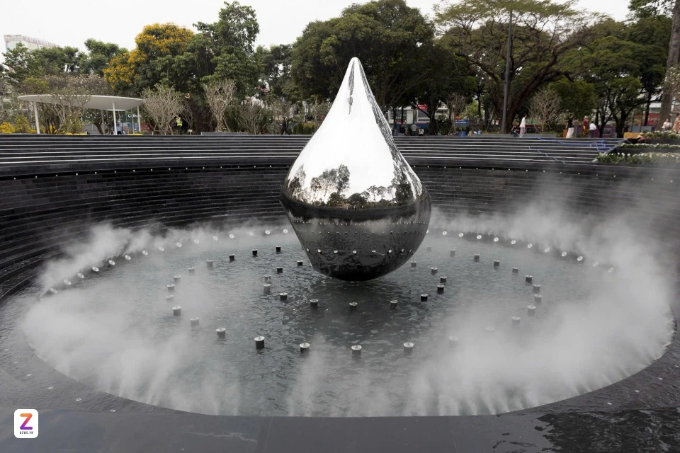 Ở trung tâm là tượng đài Giọt nước cao 6 m, chu vi 13 m, chế tác từ inox gương. Phần lõi là hình trái tim. Bề mặt phản chiếu người đứng quanh, như một ẩn dụ rằng ký ức về đại dịch là ký ức chung.