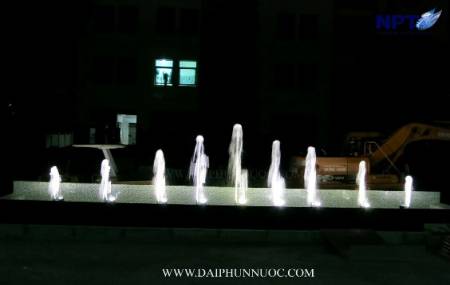- Kiểu dáng: đài phun tuyến tính (linear fountain) dài ~10 m.