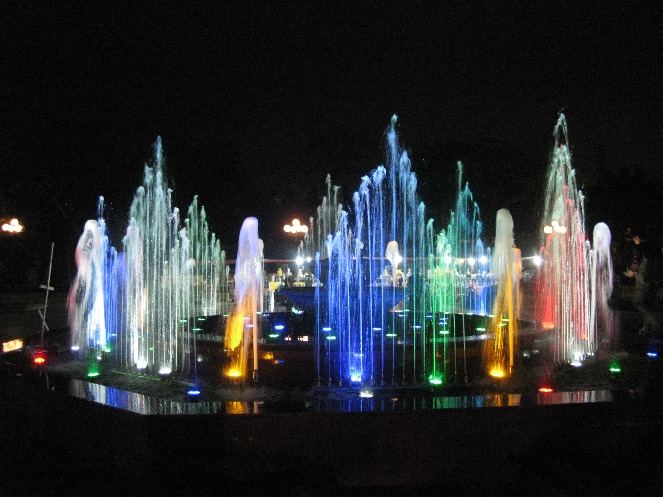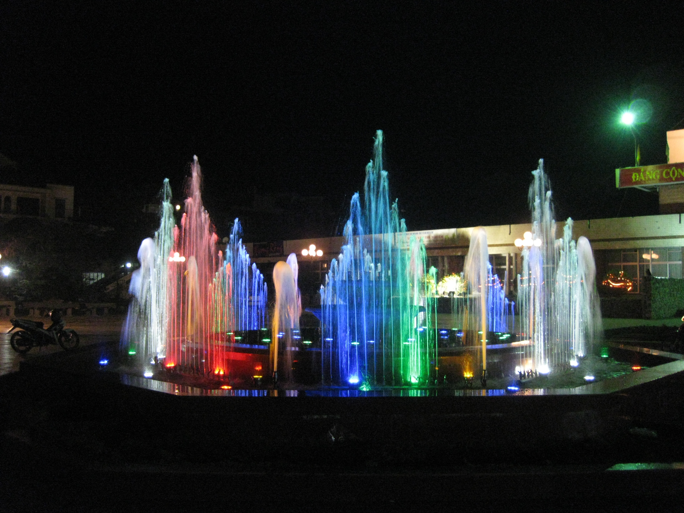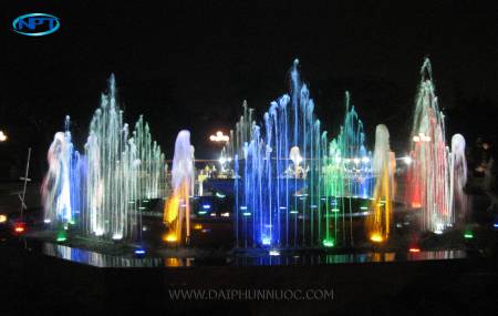 Các tia nước chuyển động theo nhạc nền, đổi màu liên tục giữa các gam đỏ, xanh, vàng, tím… tạo nên bản giao hưởng ánh sáng đặc trưng của NPT.